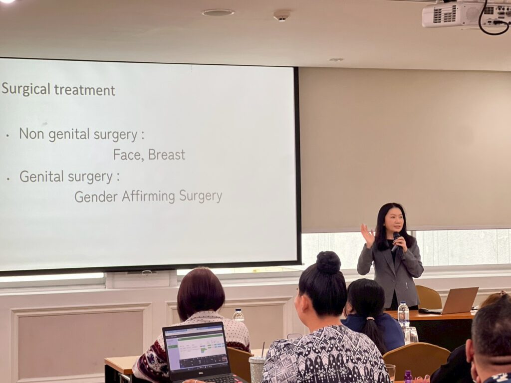 สี่วันที่ผ่านมา ผู้เข้าอบรมได้เรียนรู้การเตรียมความพร้อมในการจัดบริการฮอร์โมนยืนยันเพศสภาพในศูนย์สุขภาพชุมชมแบบรอบด้าน ตั้งแต่การเข้าใจความหลากหลายที่มากกว่าคำว่าเพศ หรือ SOGIESC (Sexual Orientation, Gender Identity and Expression, and Sex Characteristics) โดยคุณรีน่า จันทร์อำนวยสุข จาก IHRI จนถึงประเด็นเรื่่องสุขภาพจิตและภาวะไม่สอดคล้องระหว่างเพศสภาพกับเพศกำเนิด โดยนายแพทย์เมธีวัชร์ ชิตเดชะ จากโรงพยาบาลจุฬาลงกรณ์ สภากาชาดไทย